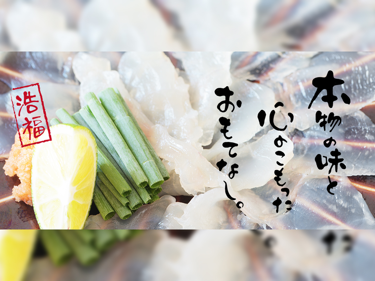 愛知県一宮市でふぐ料理を食べるなら浩福へ。ふぐ料理専門店として、本物のとらふぐ料理をリーズナブルにお気軽にお召し上がり頂けます。開業して15年、ふぐ調理歴25年の店主が自信を持って、ふぐ初心者から玄人までご納得いただけるふぐ料理をご用意してお待ちしております。
